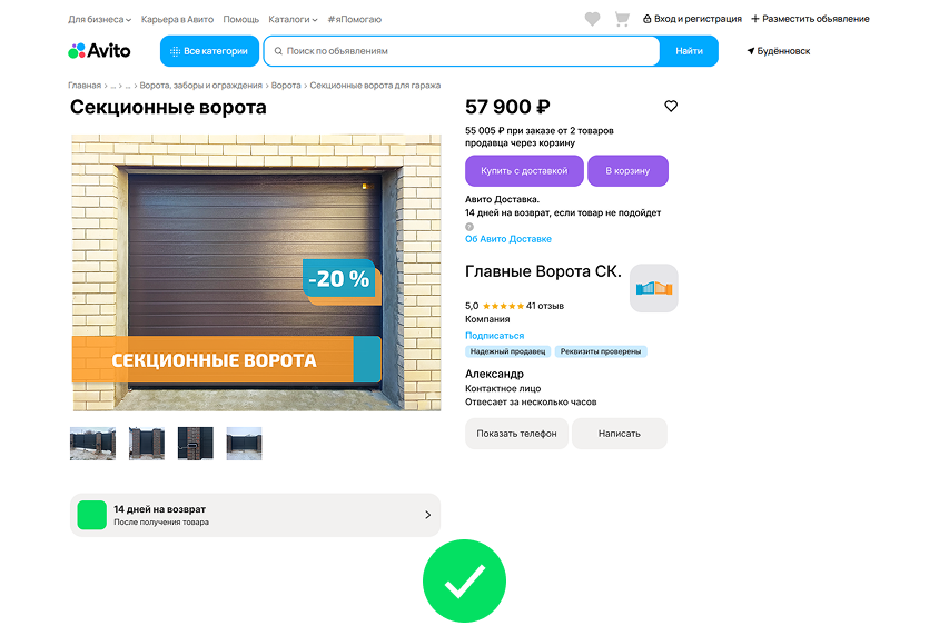 Благодаря запуску нового магазина «Главные ворота» успешно вышли на дополнительный сегмент аудитории и значительно расширили географию продаж. Теперь продукция заказчика доступна покупателям по всей стране через сервис Авито Доставка.
